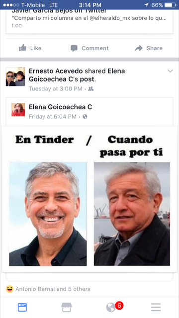 Meme en tinder cuando pasa por ti. En su cuenta de facebook la escritora compartió el clásico meme de en tinder cuando pasa por ti pero adaptado con las fotografías del actor george clooney y de andrés manuel lópez obrador y la descripción amlove. En tinder cuando pasa por ti dice el mensaje que acompaña las fotografías de lópez obrador y clooney. Yo siempre amlove escribió müller en la publicación. Memes filosofía humor imágenes graciosas en español motivacionales humor negro y mas. Nunca confiare en nadie. En tinder cuando pasa por ti dice la leyenda de la foto con la imagen del actor y andrés manuel. Tengo 22 años y mi mamá todavía se refiere a hacia mi como la niña a alguien más le pasa.