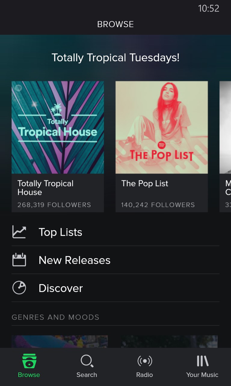 On the mobile end you are very limited in deciding what you would like to listen to.