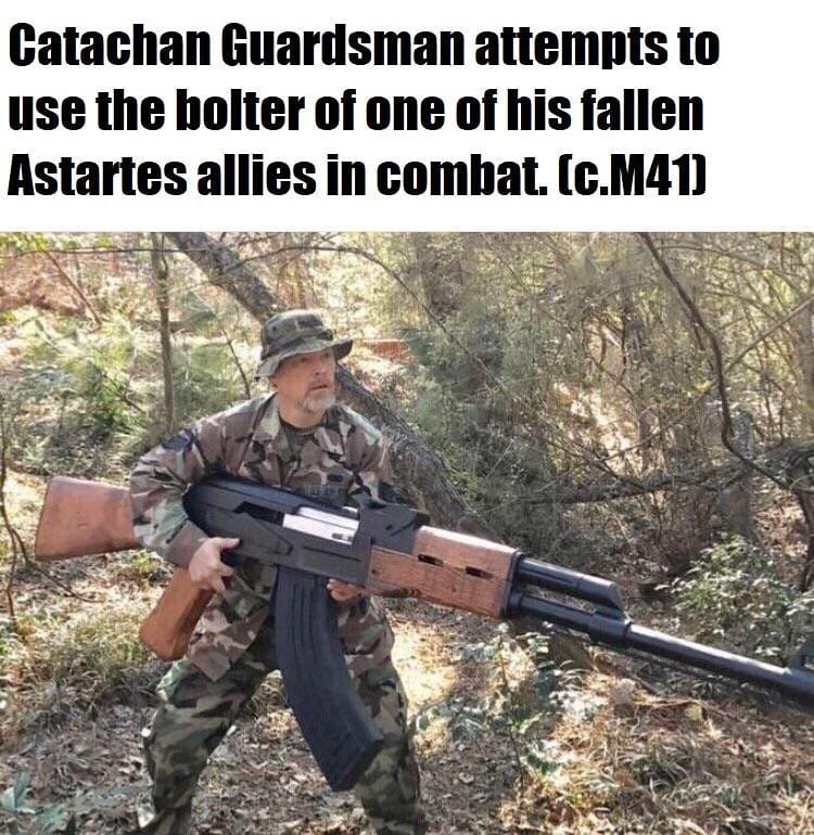 Warhammer 40k memes imperial guard. Warhammer 40k is a franchise created by games workshop detailing the far future and the grim darkness it holds. Warhammer 40k memes warhammer 40k figures warhammer 40k art warhammer 40k miniatures warhammer fantasy warhammer imperial guard 40k imperial guard imperial fist imperial army the imperial guard shield of the emperor s people loyal sheepdogs of the imperium willing to sacrifice themselves rather than give one inch of ground should it mean the survival of one imperial citizen. We play warhammer 40k x wing armada kings of war pathfinder warhammer fantasy age of sigmar and make battle report videos. Warhammer 40k memes warhammer art warhammer fantasy warhammer 40000 imperial guardsman 40k imperial guard imperial fist art memes the grim warhammer40kdatabase laboratorium ix. See more ideas about warhammer 40k memes imperial warhammer 40000. The astra militarum also known as the imperial guard in colloquial low gothic is the largest coherent fighting force in the galaxy. It is comprised of countless billions of men and women hundreds of thousands of different regiments supported by a vast array of light and heavy armoured vehicles that provide.